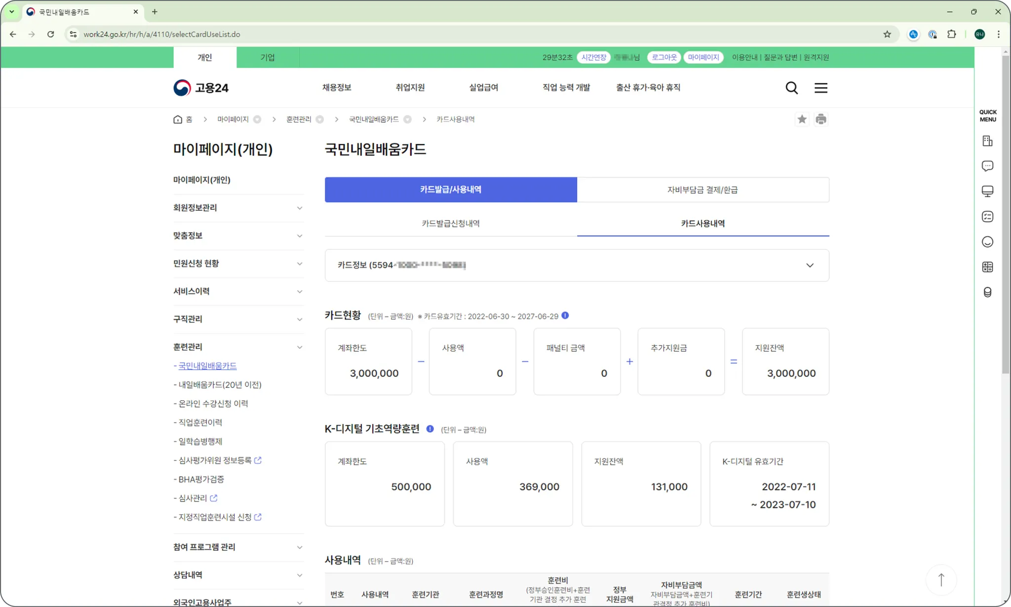 ‘국민내일배움카드’가 있으면 신청하실 수 있어요.