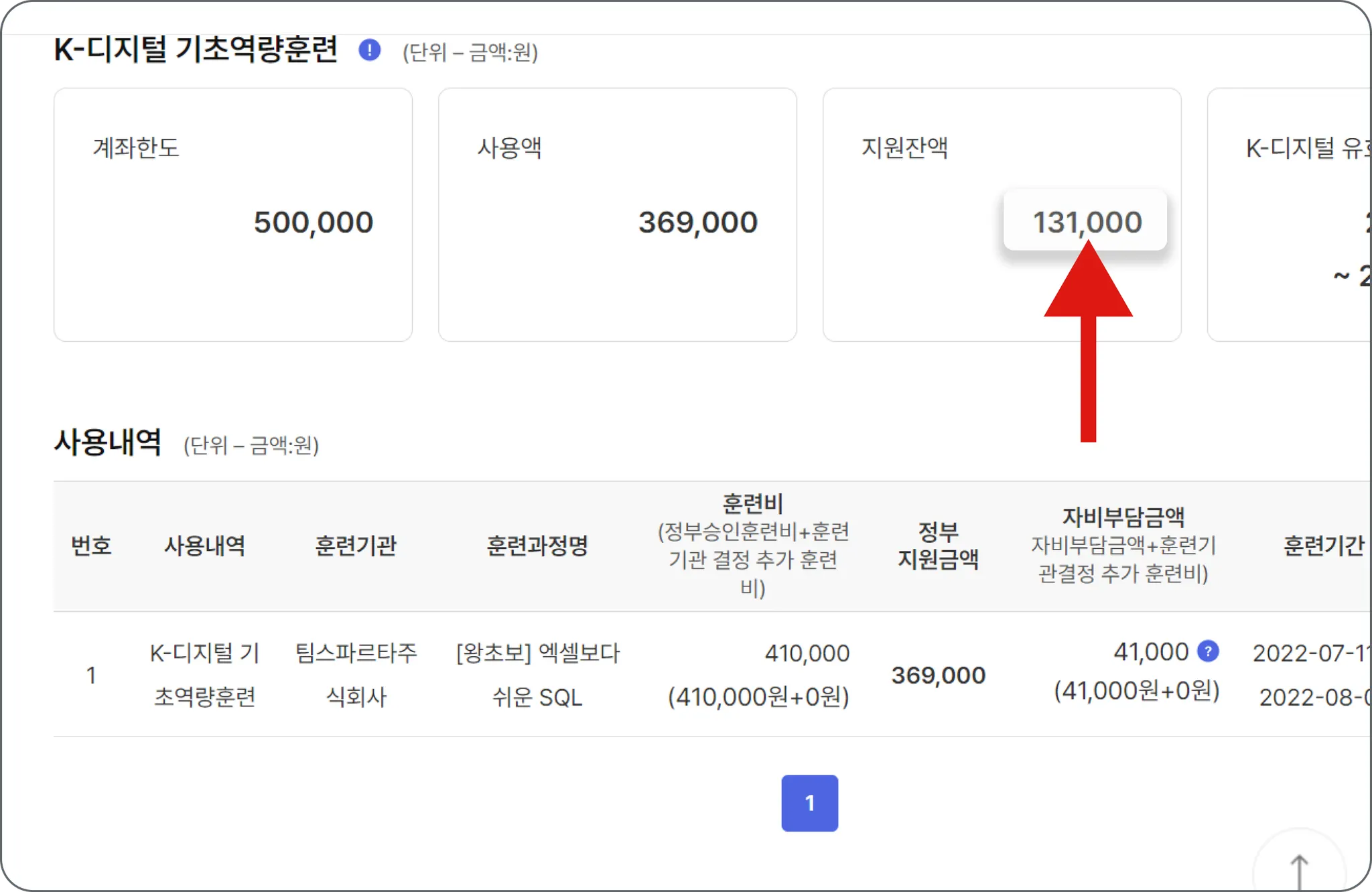 이전에 내일배움카드를 사용했더라도 잔액이 단 1원 이상만 남아있다면 1회에 한해 추가 지원이 가능합니다!