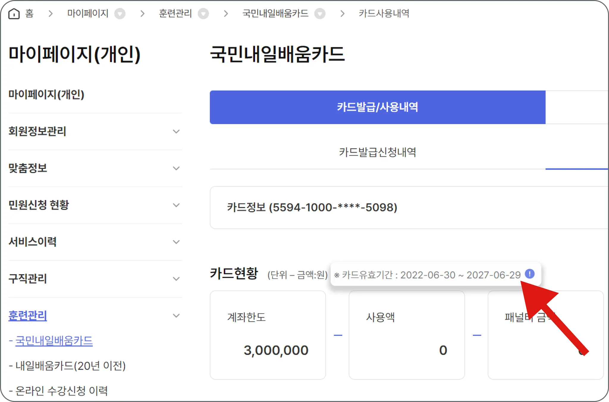 국민내일배움카드의 유효기간은 발급일로부터 5년입니다.